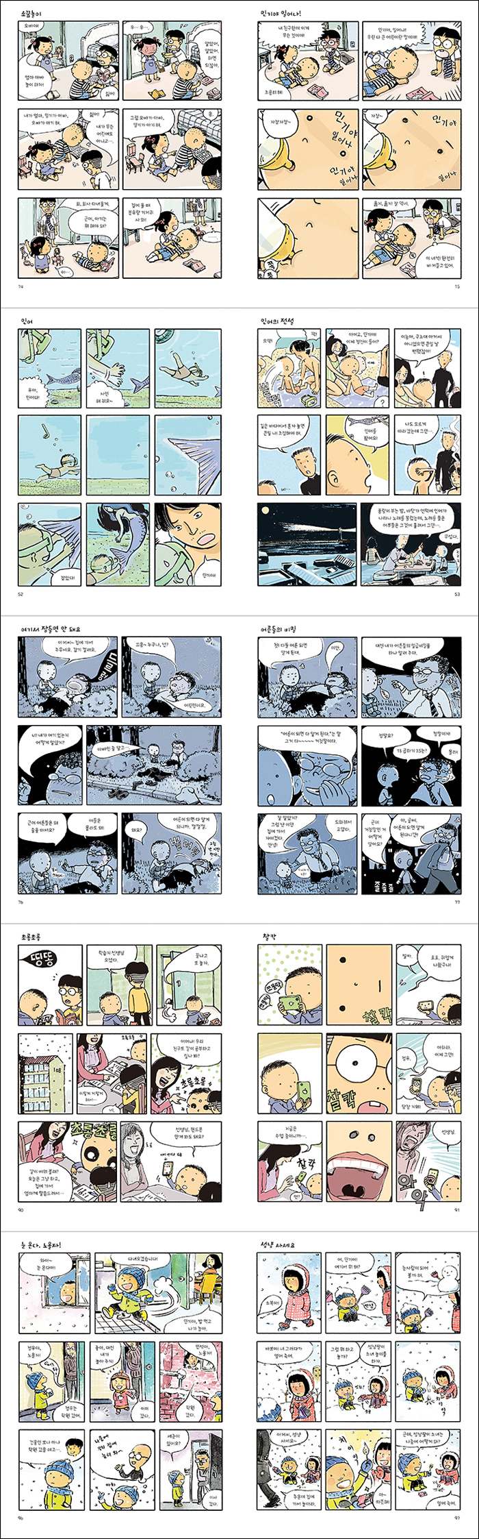 한 페이지로 이루어진 각 에피소드는 잔잔한 미소를 짓게 하는 매력적인 이야기들이라 마지막 페이지까지 기대하며 읽게 된다. 특별 단편 「동생 아가가 나타났다!」와 「콧털 할아범이 나타났다!」는 만화 속 만화를 보는 깨알 재미를 느끼게 한다. 별다른 일들이 일어나지 않음에도 평범한 어린이들의 모든 일상이 특별하다는 것을 깨닫게 해 주는 <밍기민기>는 온 가족이 함께 읽을 수 있는 만화이다.